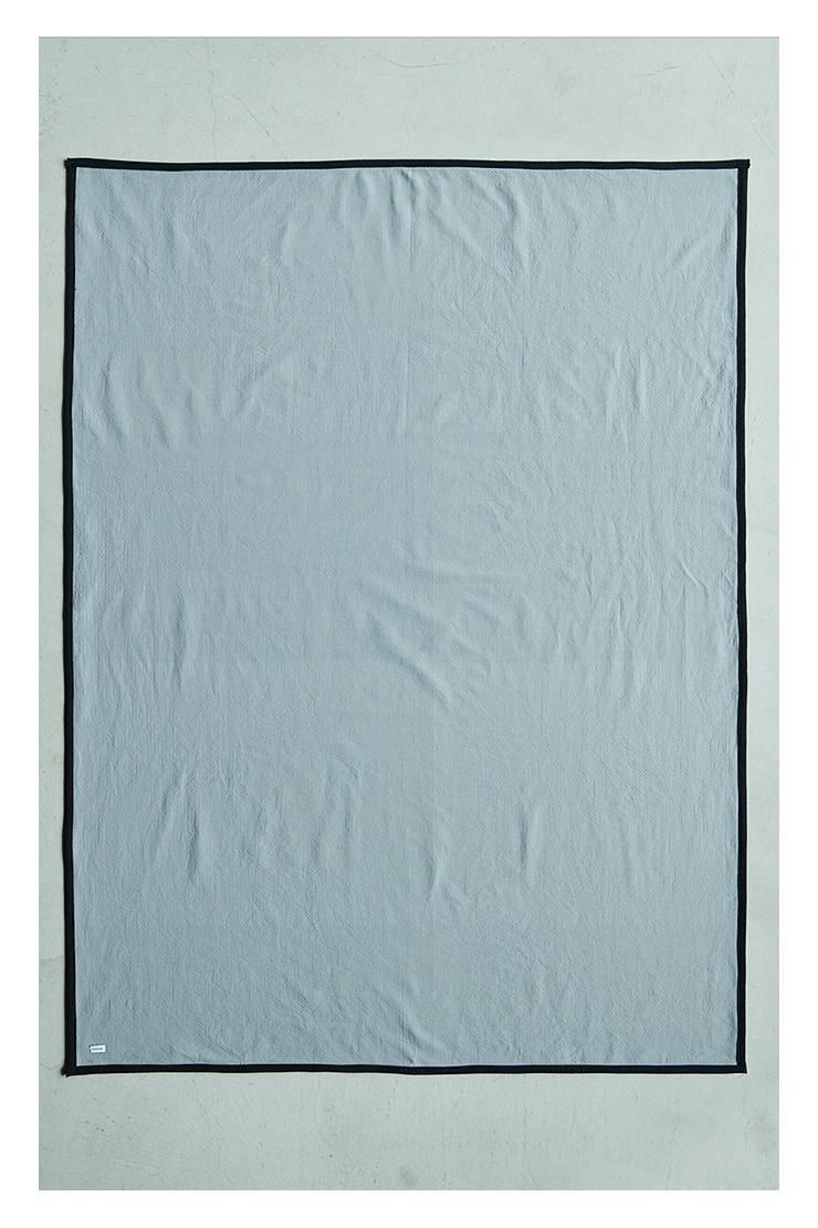 loomerオリジナルの刺子調生地で作ったマルチケット。本来、刺子の生地は布を重ね合わせ刺し縫いをしますが、loomerでは織りの表現のみで刺子調の生地を作りました。糸の膨らむ性質を利用して畝を表現し、ステッチが入っているような糸を入れています。膨らみをもたせた生地が心地よい手触りです。ベットやソファーのカバー、ラグとしてマルチにお使いください。